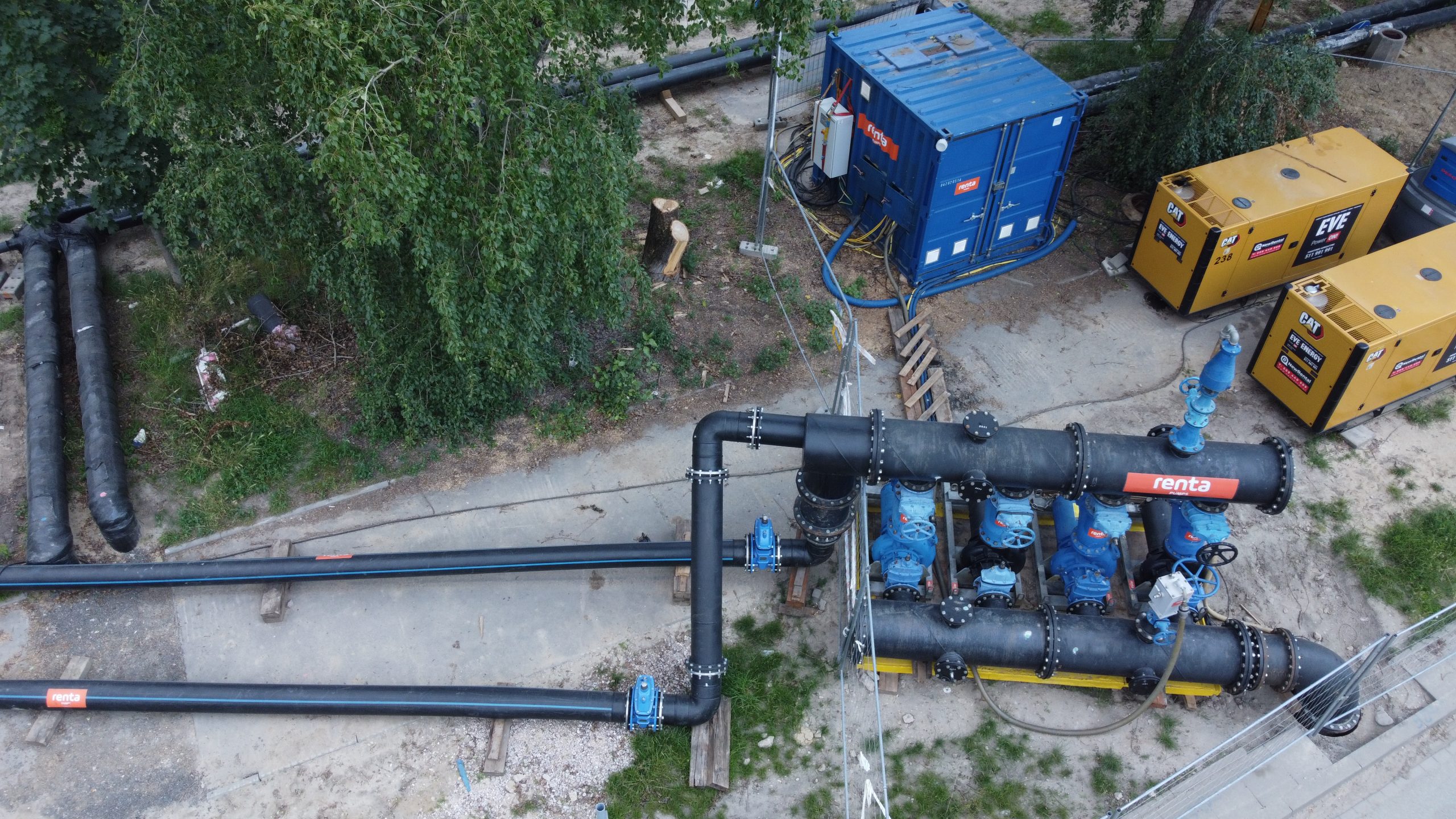 Zasilanie przepompowni zostało zabezpieczone przez dwa agregaty prądotwórcze CAT o mocy 220 kVA każdy, pracujące w układzie SZR. Dzięki temu zapewniono pełną niezawodność dostarczania energii i ciągłość pracy całego systemu bypassowego.