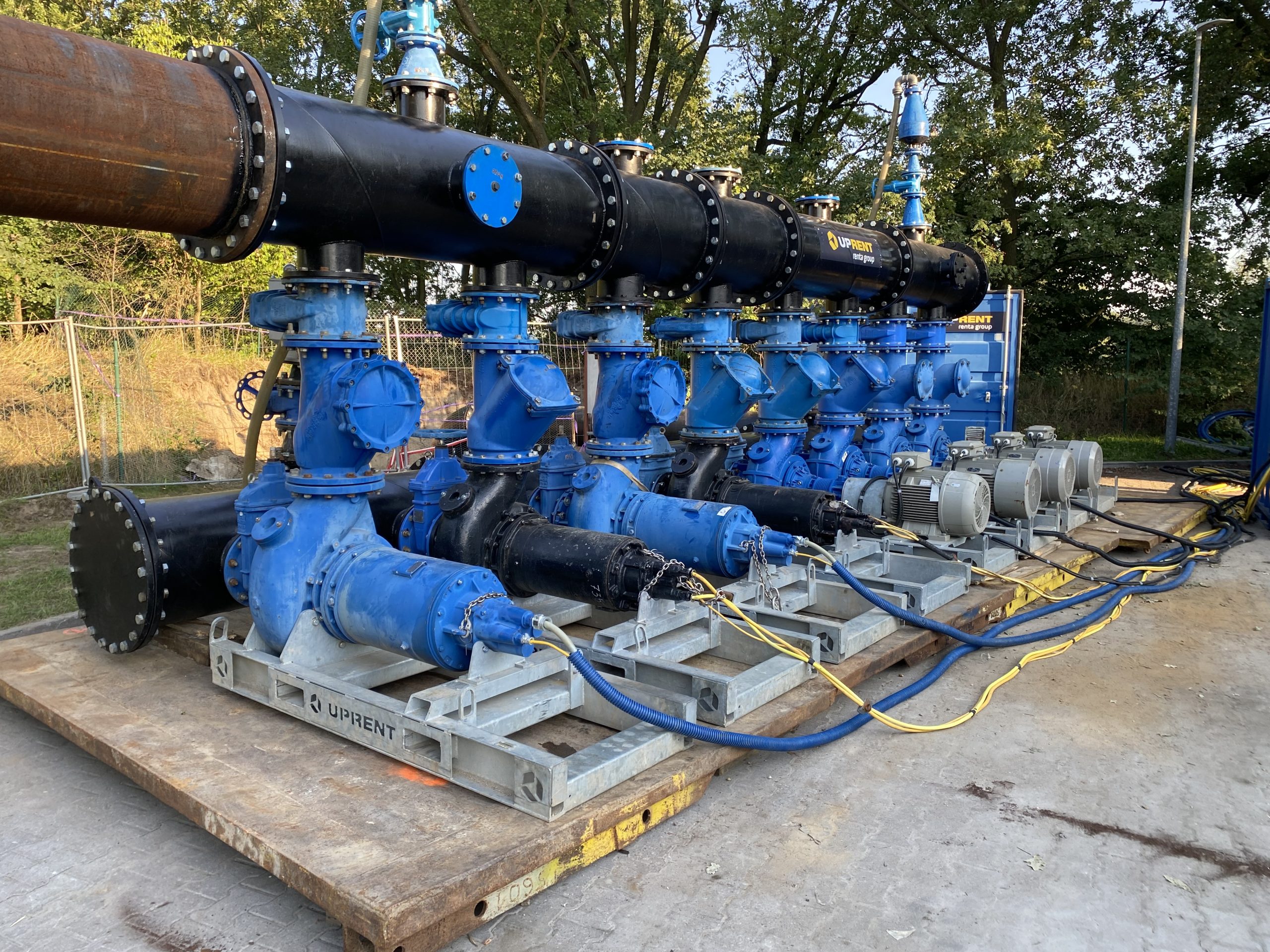 W projekcie wykorzystano 8 pomp Hidrostal F10 o wydajności 970 m3/h każda oraz pompy BBA BA 150 KS do tymczasowego pompowania ścieków. Praca pomp odbywała się automatycznie za pomocą 4 sterowników PLC kontrolujących częstotliwość pracy pomp, co pozwoliło na bezobsługową pracę urządzeń przez cały czas trwania projektu. Konfiguracja pomp pozwoliła na osiągnięcie całkowitej wydajności systemu wynoszącej maksymalnie 5 400 m3/h. Transport ścieków do komory odbiorczej odbywał się za pomocą rurociągu o średnicy 500 mm i długości 25 mb, dostarczonego przez Renta Pumps. W ramach zadania dostarczono wysokiej klasy generator prądu o mocy 500 kVA wraz z automatyką umożliwiającą uruchomienie generatora w przypadku awarii zasilania.