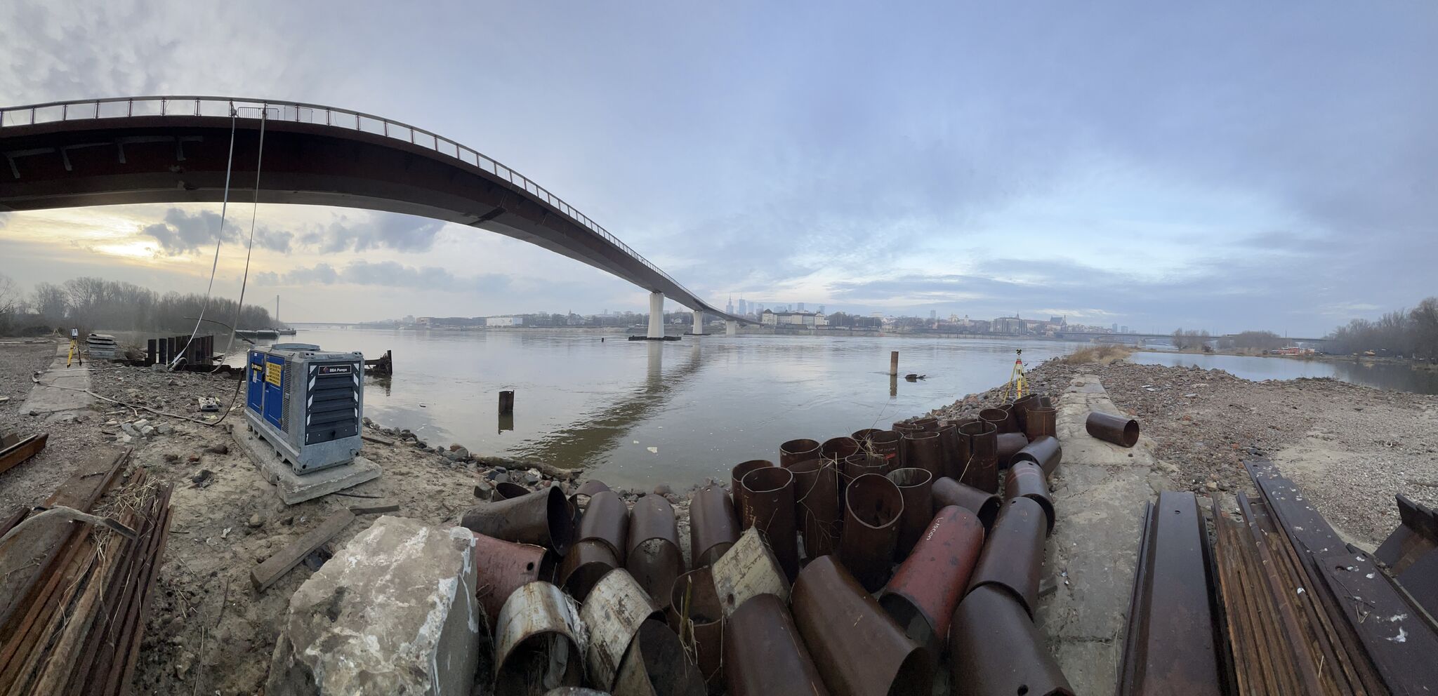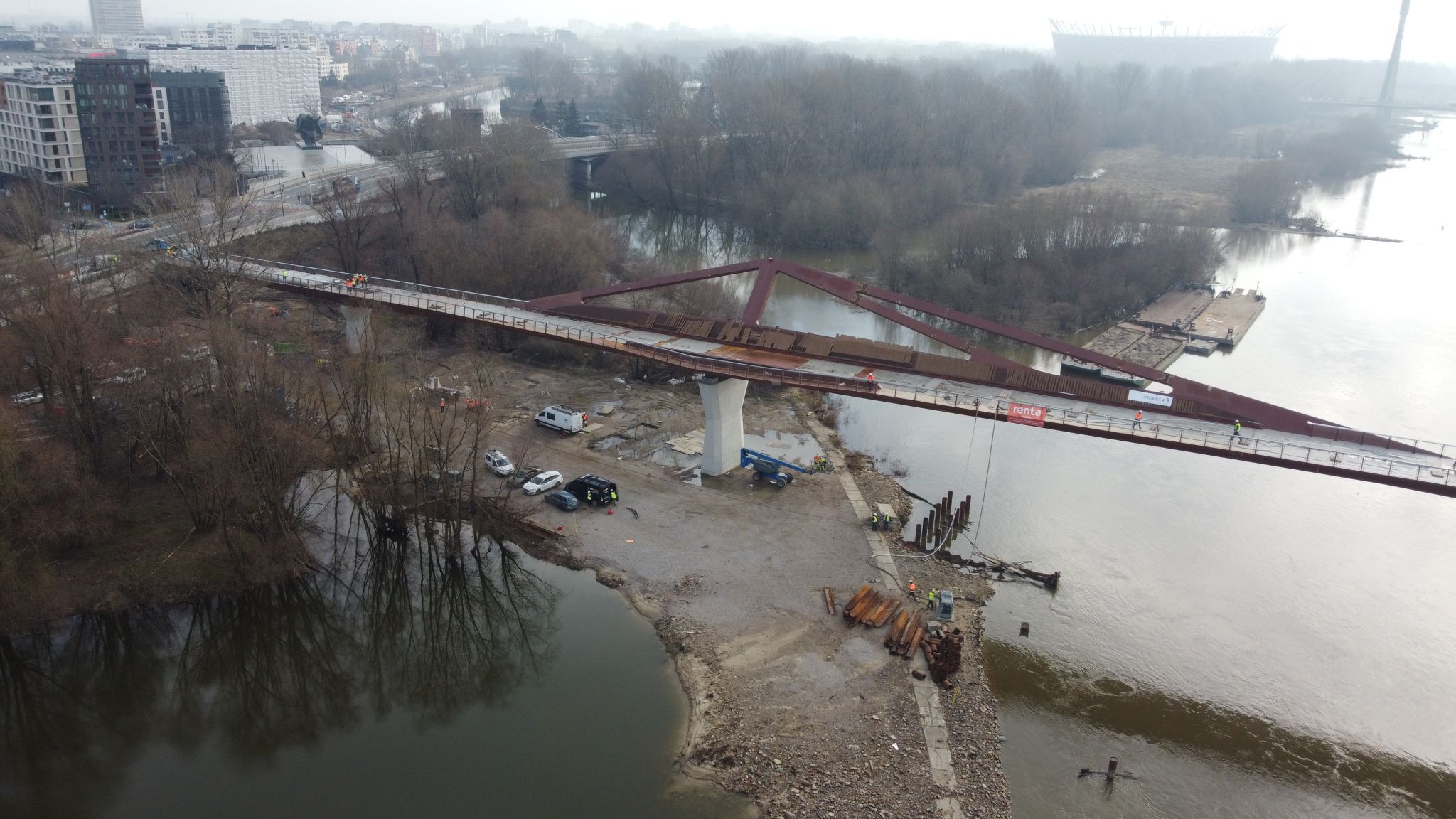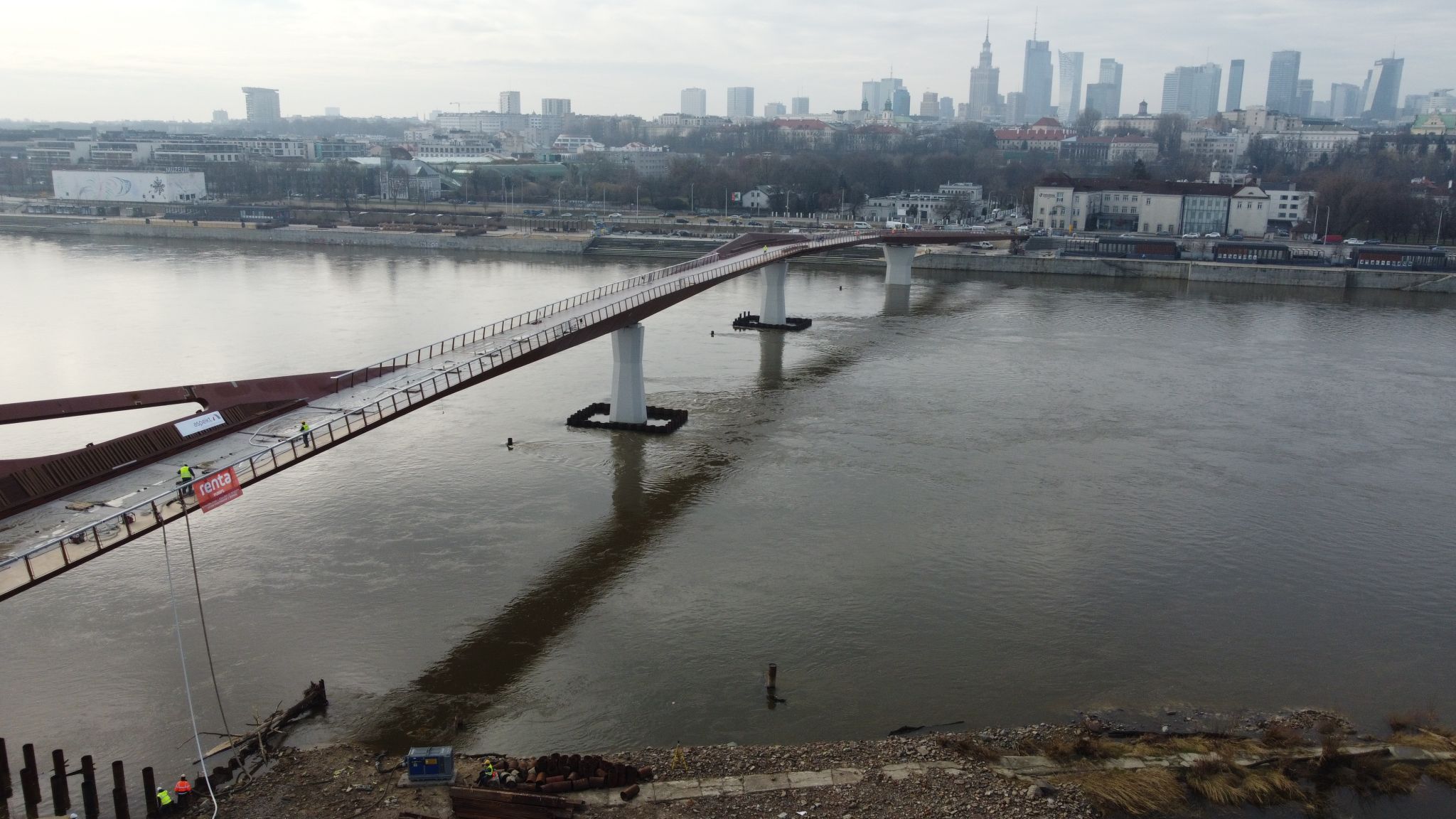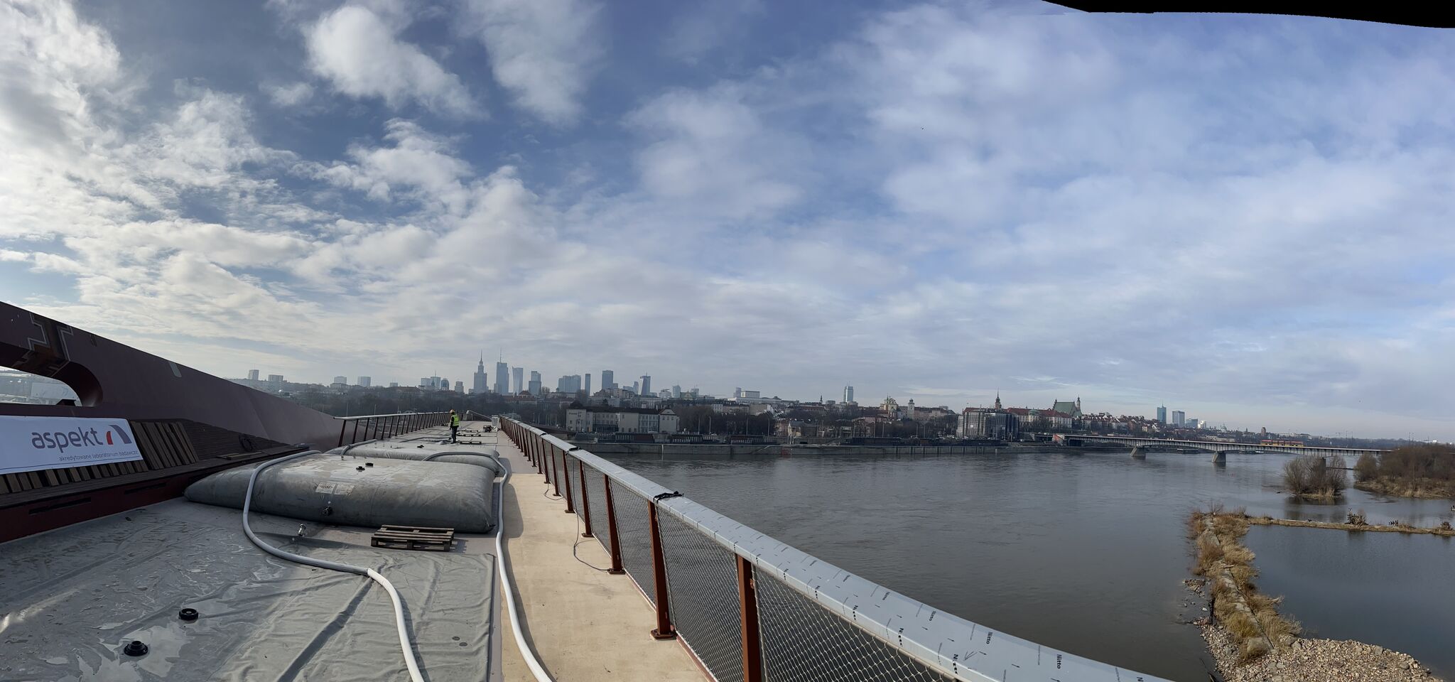 Warszawa, Polska Na zlecenie Budimeksu, we współpracy z Aspekt Laboratorium Sp. z o.o. i Politechniką Gdańską, przeprowadziliśmy próbne obciążenie kładki pieszo-rowerowej przez Wisłę w Warszawie.